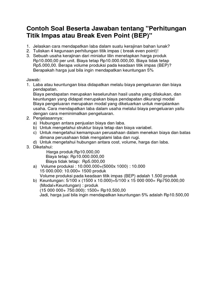 Dua tujuan titik pulang modal. We did not find results for: Check spelling or type a new query. Maybe you would like to learn more about one of these?