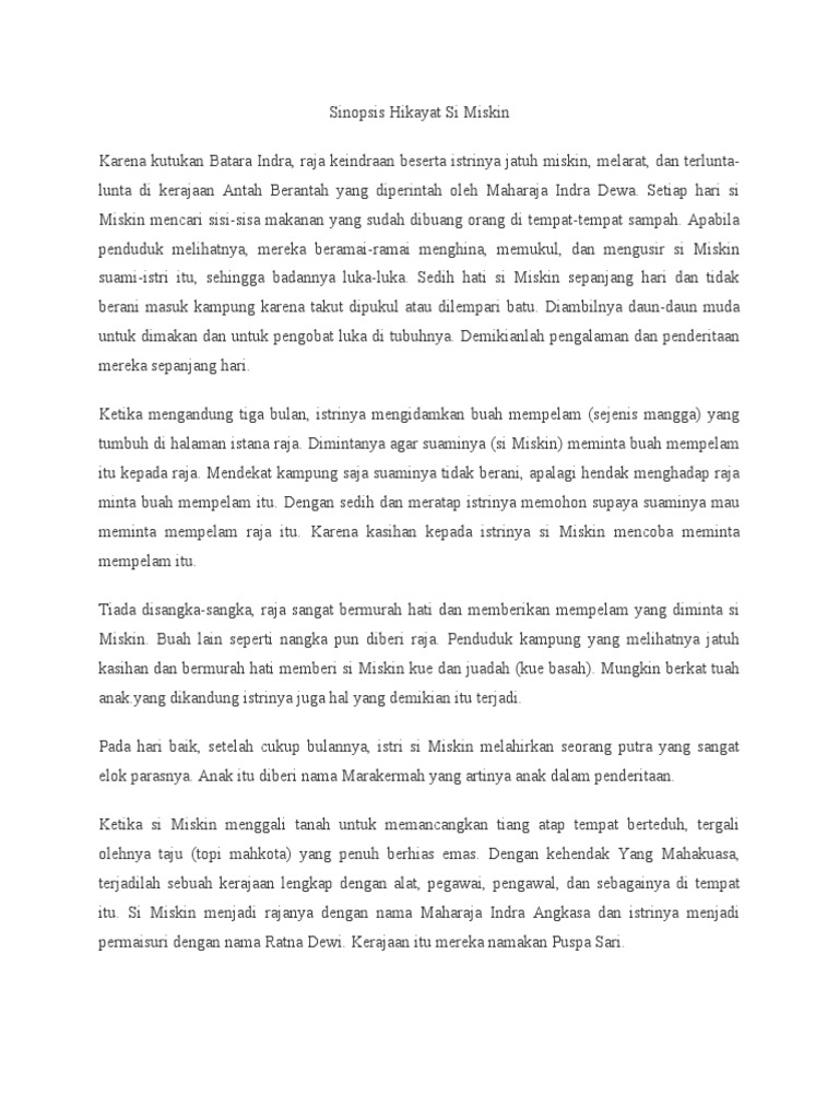 Karena sumpah batara indera, seorang raja keinderaan beserta permaisurinya dibuang dari keinderaan sehingga tapi si miskin menolaknya sehingga si isteri semakin keras menangisnya. Dalam hikayat ini kita diajarkan untuk menjadi orang yang setia. Farel sangat sayang kamu, jangan bikin farel nangis karena gak salah apapun sama kamu. Si batu kembar menangis meminta tolong kerana kepanasan. Di kalimantan barat, terdapat cerita batu menangis.